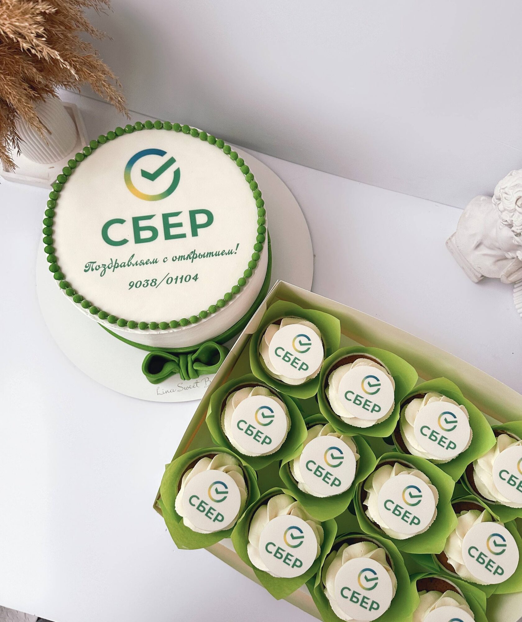 Набор - торт "Сбер" + тематические капкейки